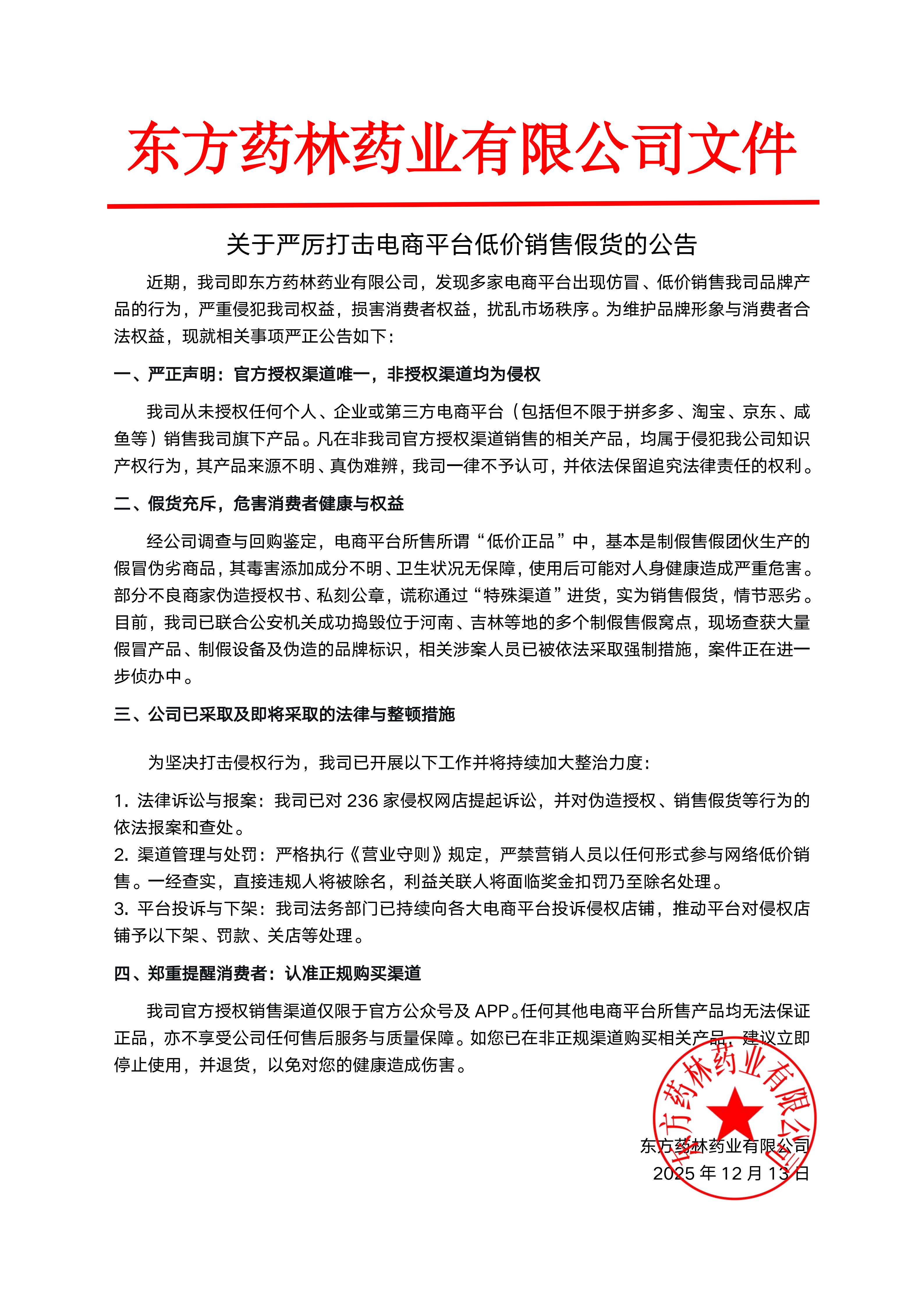 关于严厉打击电商平台低价销售假货的公告